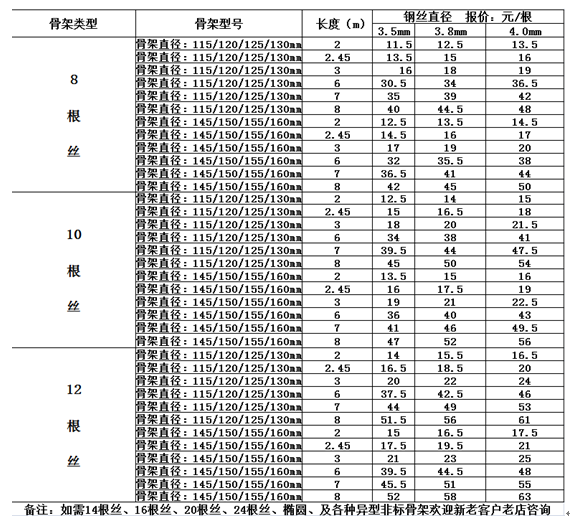 噴塑骨架價格表